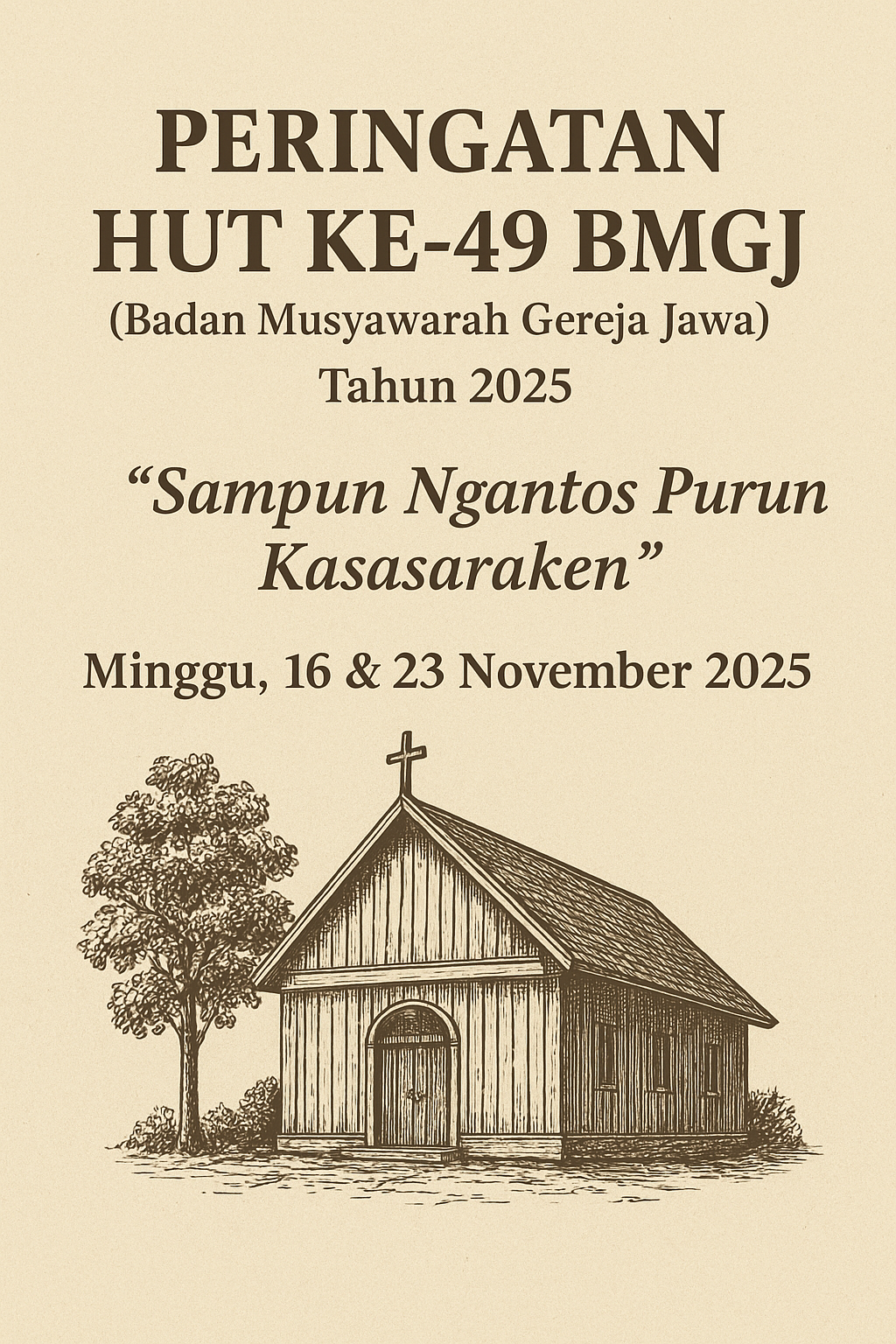 Puji syukur atas perkenan-Nya sehingga BMGJ akan memperingati HUT ke-49 BMGJ pada tahun 2025 ini. Berdasar pada keputusan Sidang Raya XIV BMGJ maka dalam rangka HUT BMGJ akan dilaksanakan Tukar Mimbar/Tukar Pelayanan.